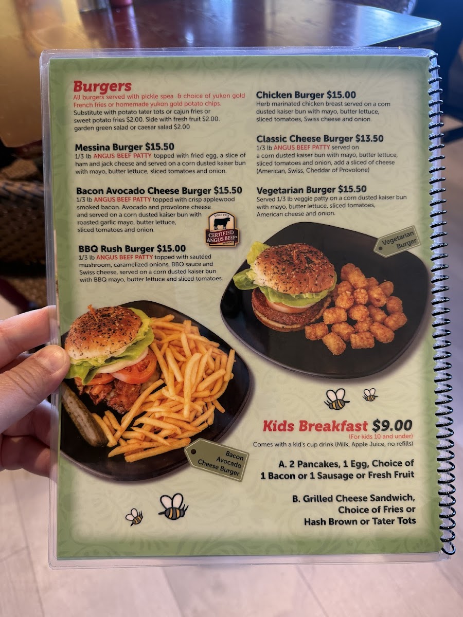 1/3 lb angus beef patty topped with sauteed mushrooms, caramelized onions, bbq sauce and swiss cheese, served on a corn dusted kaiser bun with bbq mayo, butter lettuce and sliced tomatoes